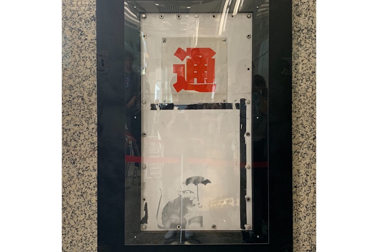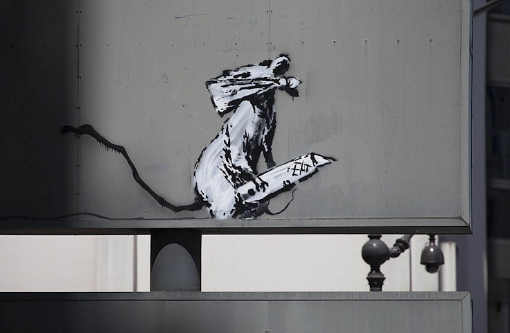 2019年9月、パリの現代美術館ポンピドゥー・センター近くの路上に描かれたバンクシーのネズミの絵が盗まれた。ネズミはアーティストの分身として作品によく登場するが、このネズミも、顔を隠し、手にはカッターナイフを持っており、まるでステンシルの型をくり抜き、ゲリラ的に作品を残していく覆面アーティストのようだ。1年前に作品が設置された際のバンクシーの声明から、これは、パリの学生運動「五月危機」の50周年を記念し、近代ステンシルアートの誕生の地であるパリへ捧げたものだと理解できる。