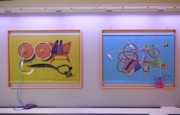 そうすると今度は、小屋の外に描かれていた絵が内側にくる。するとそれが洞窟壁画みたいな空間になって、妙な広がりが生まれるなと。で、一回それをやったことで僕の空間はもう外に出た。というので、その次の藝大大学院の修了制作では小屋などはいっさいつくらずに、単純に空間にバーっと展開していったんです。