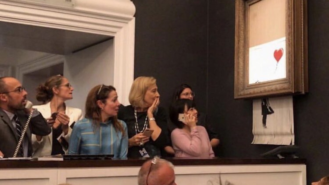 そんなアイコニックな作品が絵画化された《Girl With Balloon》(2006)が10月5日、ロンドンのサザビーズに登場。30万ポンド(約4400万円)の落札予想額を超え、100万ポンド(約1.5億円)での落札が告げられると同時に、事件は起こった。