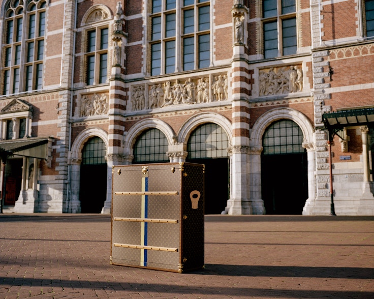 本作は、今回の展示にあたってルイ・ヴィトンが特製のトランクを製作。作品の所蔵者であるアムステルダム国立美術館が依頼し、外装には作中の色をモチーフにした黄色と青のストライプペインティングが施されている。