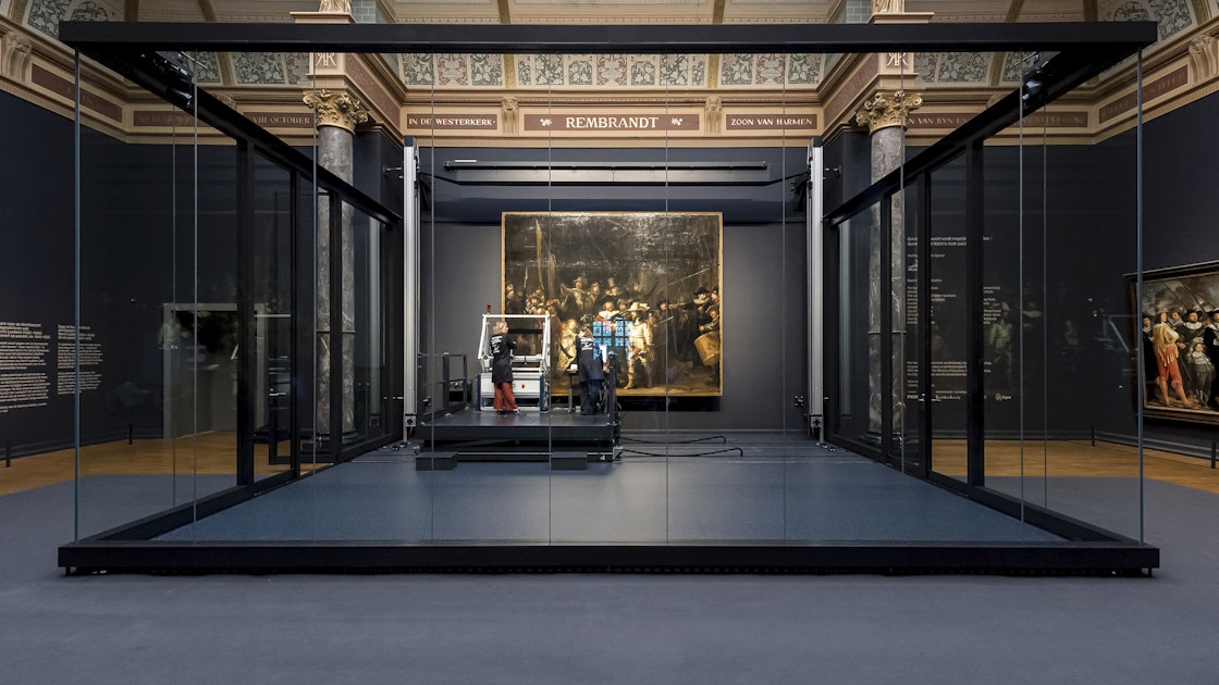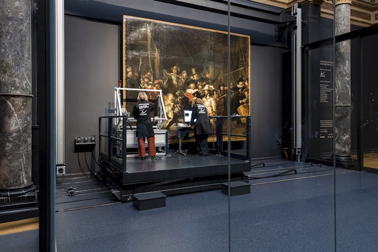 アムステルダム国立美術館(Rijksmuseum)で常設展示され、門外不出とも言われるレンブラント・ファン・レインの名画《夜警(正式名称:フランス・バニング・コック隊長とウィレム・ファン・ライテンブルフ副隊長の市民隊)》(1642)。レンブラントおよびオランダ黄金時代を代表する絵画が、2019年7月より修復期間に入った。