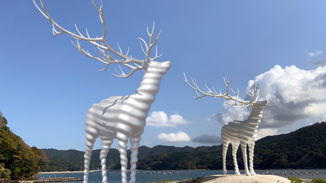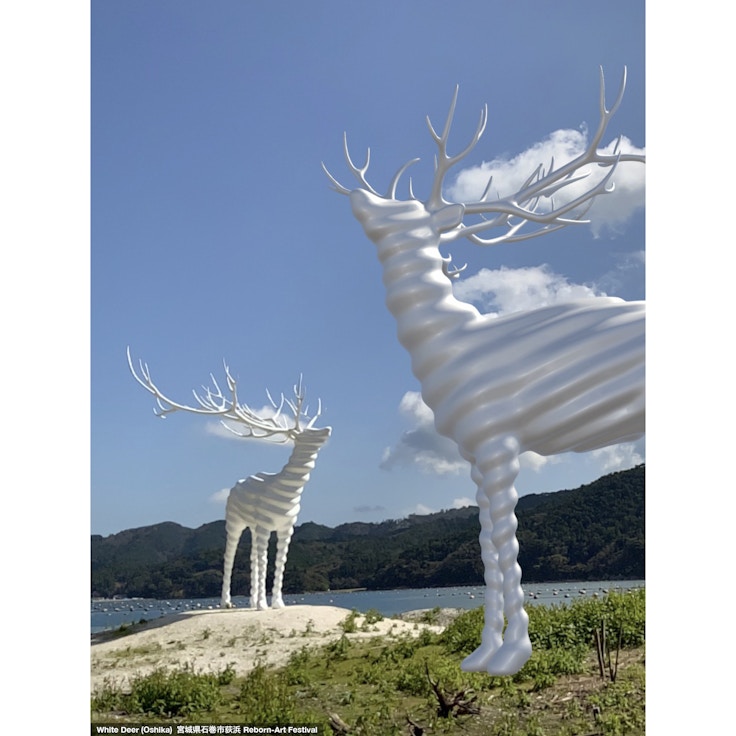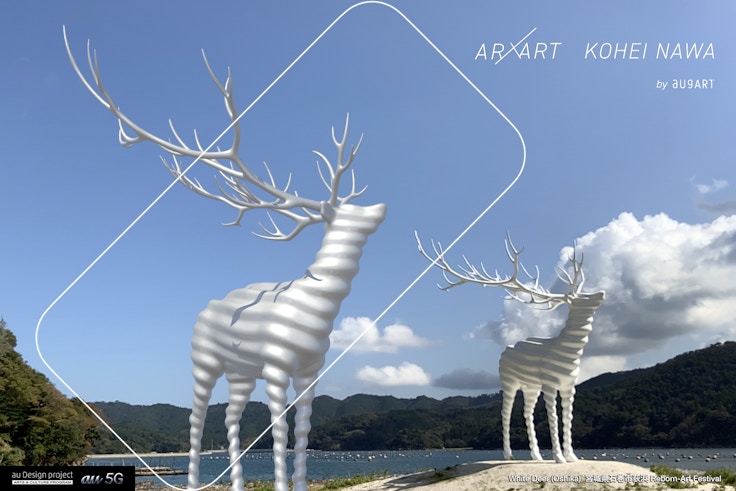 名和晃平の代表作のひとつである《White Deer》もAR化された。「White Deer_AR」では、「GINZA 456 Created by KDDI」などau5Gエリアにある特別な場所や、リアルな《White Deer》が設置されているスポット、あるいはホテル・アンテルーム京都やGYREなど、名和にゆかりのある場所に同作がARで出現する。