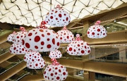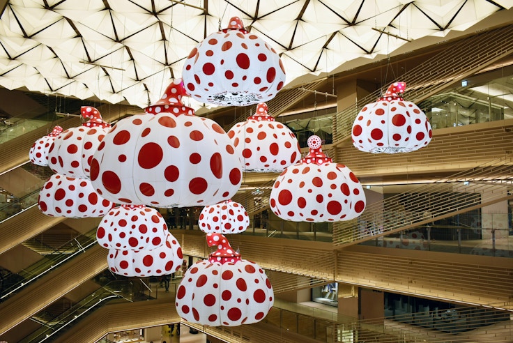 なかでも「インスタ映え」する作品として一躍大きな注目を集めてきたのが、草間彌生のバルーンインスタレーション《南瓜》だ。3種類14個からなる巨大カボチャが、シャンデリアのように吊り下げられているのを目にした人も多いだろう。この作品は当初より常設展示ではないことが明らかにされてきたが、3月21日をもってついに展示終了となることが発表された(再展示の予定はなし)。