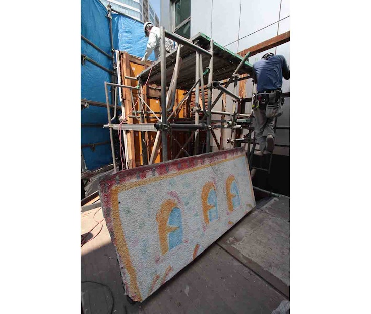 その後、2階建てのこの建物は、ワタリウム美術館開館以降もバリー・マッギーやJR、Chim↑Pomら様々なアーティストたちが作品発表の場として使用。しかしながら、「建物の老朽化と壁画の劣化の両面から、建物の解体と壁画の修復という決断に踏み切りました」(和多利浩一)という。